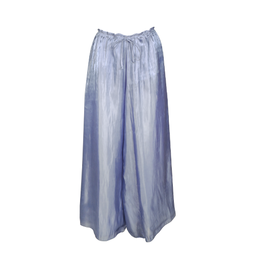 Wide-leg oversized pants designed in flowing shimmer fabric, complete with a drawstring waist finished with delicate pearl details at the tips. Effortlessly chic and comfortable.