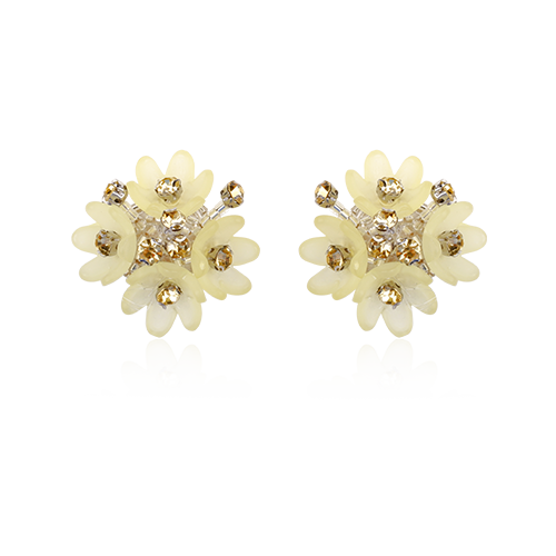 Elegant dot earrings featuring lime laser-cut acrylic petals accented with yellow crystal embellishments. Designed in a compact floral silhouette and finished with silver-tone stud fastening.